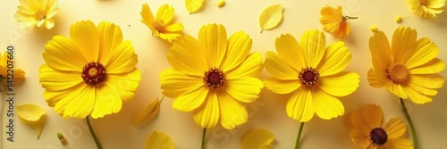 © saksayam, Fototapeta premium Dried yellow cosmos blossom, flat pressed, studio shot , botanical, sun