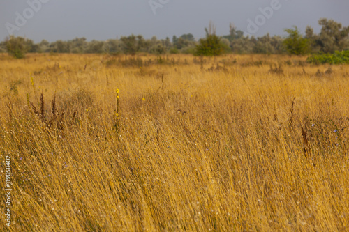 Obraz premium dried yellow grass and green trees