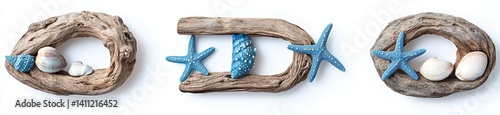 © Kahar, Fototapeta premium Driftwood Frames with Seashells and Starfish