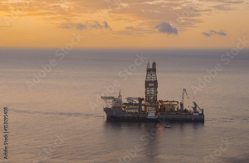 Fototapeta premium Drill Ship on the ocean at sunrise