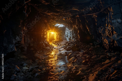 Obraz premium Drilling deep tunnels for open-pit mining involves extensive and meticulous techniques to access and extract mineral deposits from beneath the surface.