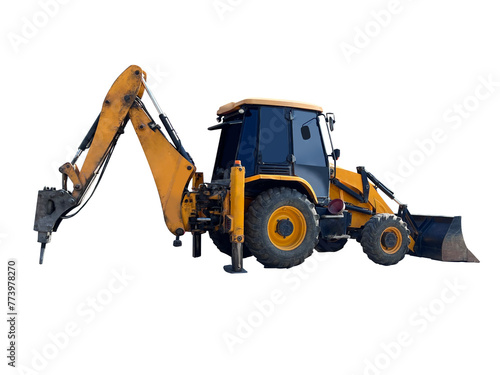 © Kingkarn, Fototapeta premium Drilling truck on a beautiful pink background