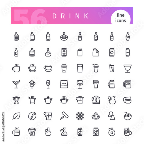 © Voysla, Fototapeta premium Drink Line Icons Set