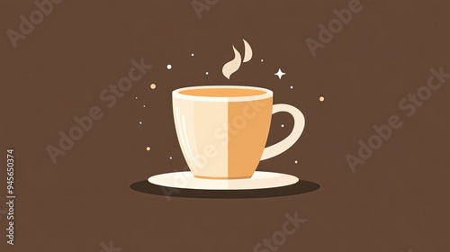 © indyntk, Obraz premium Drinking coffee minimalist flat design solid brown background cozy vibe