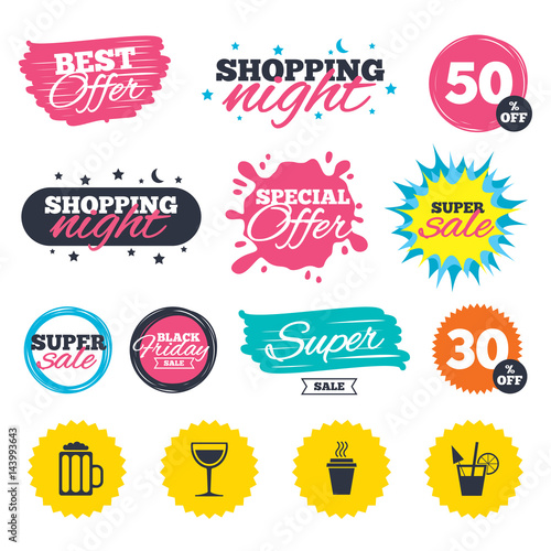 Obraz premium Drinks signs. Coffee cup, glass of beer icons.
