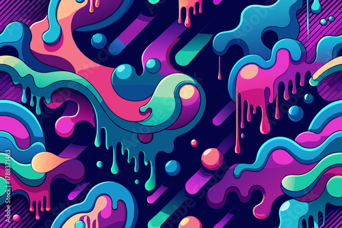 Obraz premium Dripping Abstract Forms and Streaks on Geometric Grid