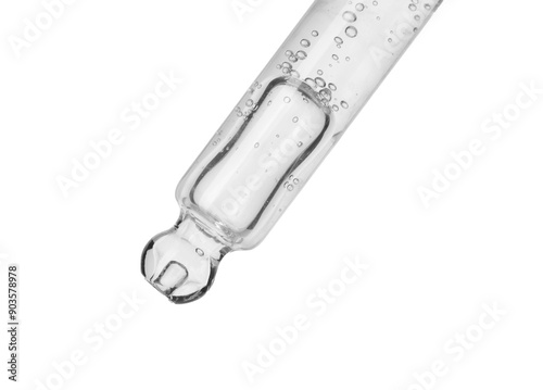 © New Africa, Naklejka premium Dripping cosmetic serum from pipette on white background