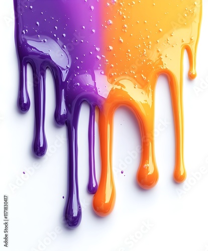 © BAYC, Naklejka premium Dripping liquid orange and purple on a white background