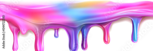 © Oksana_Latysheva, Naklejka premium Dripping rainbow slime liquid isolated on a white isolated background. Rainbow slime splash
