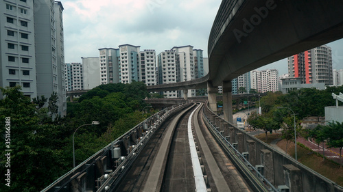Fototapeta premium Driverless LRT Train on Elevated Tracks in City of Singapore