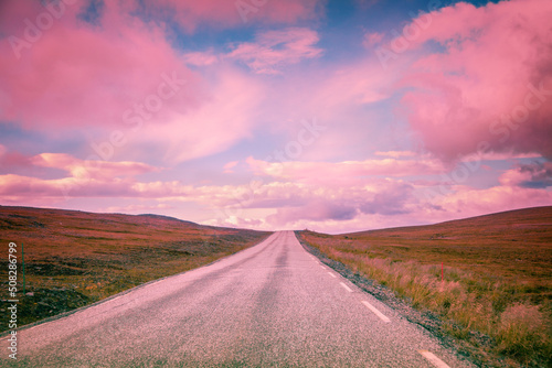 © vvvita, Fototapeta premium Driving a car on mountain road. Beautiful harsh nature of Northern Norway. Polar circle. The way to Nordkapp