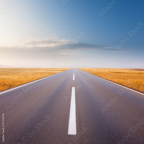 © rasica, Fototapeta premium Driving on an empty road at bright sunny day