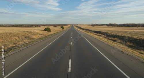 © Misi, Fototapeta premium Driving on Long Straight Country Road Through Rural Texas Landscape