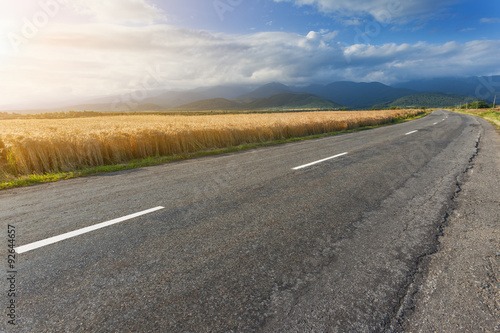 Fototapeta premium Driving on open road against the sunlight