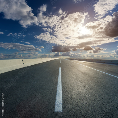 © rasica, Fototapeta premium Driving on open road towards the setting sun