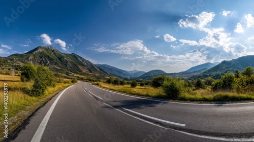 © BONDET LUCKY, Naklejka premium Driving on Scenic Road Through Mountain Landscape on Sunny Day