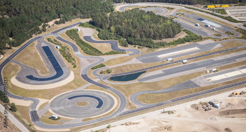 © Mario Hagen, Naklejka premium Driving safety training area with various practice routes - aerial view