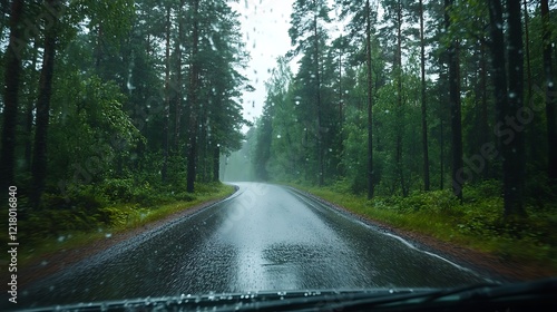 © SANDJAYA, Obraz premium Driving Through a Rainy Forest