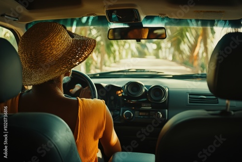 © Mandeep, Naklejka premium Driving through the countryside in a vintage car