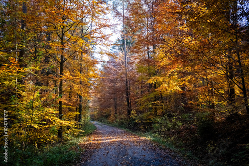 Obraz premium Droga w jesiennym lesie