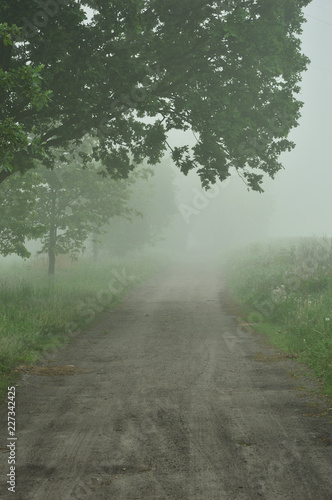 © W Korczewski, Fototapeta premium Droga wśród drzew we mgle w jesienny poranek.