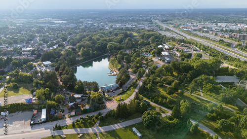 © Artem Onoprienko, Fototapeta premium Drone aerial view of Laval the suburb of Montreal. Quebec , Canada.