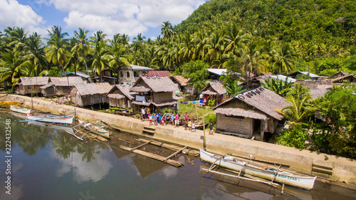 © Tim, Naklejka premium drone aerial view village siargao philippines kids houses
