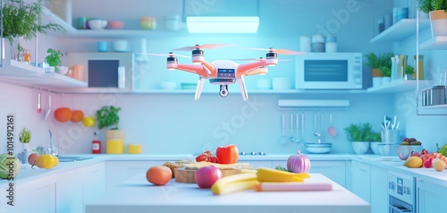 Obraz premium Drone delivering groceries in kitchen