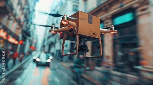 Obraz premium Drone Delivery Concept Featuring an Unmanned Aerial Vehicle Carrying a...