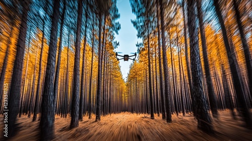 © slamet, Fototapeta premium Drone Flight Through Golden Autumn Forest