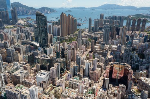 © leungchopan, Fototapeta premium Drone fly over kowloon district