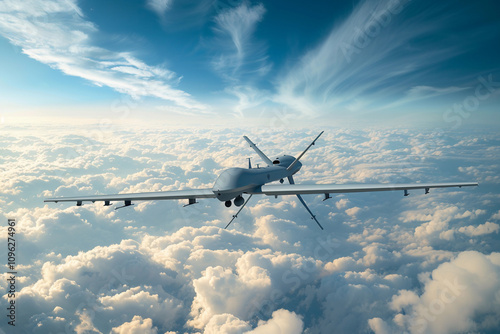 Fototapeta premium Drone flying in sky over beautiful nature during observation from top