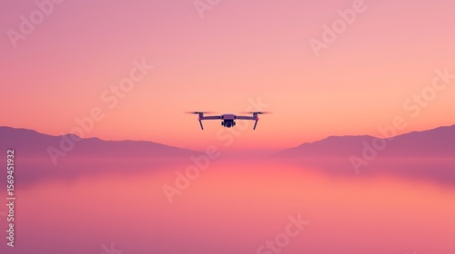 © SUS Designs, Fototapeta premium Drone Flying Over Pink Sunset Lake Landscape