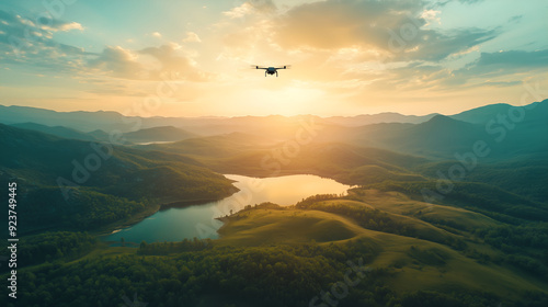 Obraz premium Drone Hovering Over Breathtaking Landscape with Vibrant Nature and Expansive...