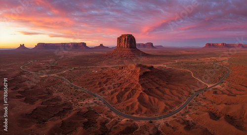 © Letyi, Naklejka premium Drone Photography of Canyon Road Through American Southwest Red Rocks Landscape