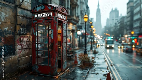 © Adisorn, Fototapeta premium Drone's eye view of a vintage phone booth.