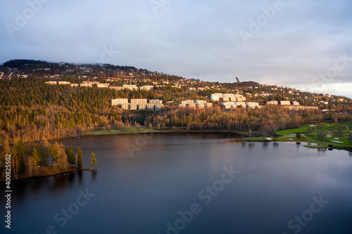 © SteinOve, Fototapeta premium Drone shot of the nature around Bogstad, Oslo, Norway.