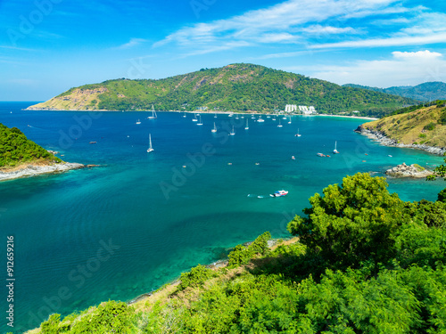 © Panya, Obraz premium Drone view Beautiful sea in high season at Phuket Thailand