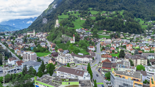 Naklejka premium drone view of Castle in Sargans, Switzerland - Sargans castle - Schloss...