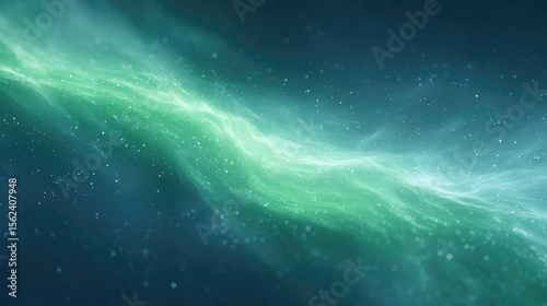 © Andrei, Fototapeta premium drone-view of ethereal green energy streams forming fractal arcs over dark canvas speckled with micro light points