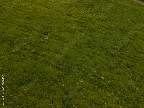 © Tatiana, Obraz premium Drone view of the highway road, forest and fields, top view and blue sky
