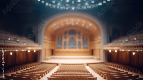 © Andrei, Obraz premium drone-view overhead of elegant conference hall chairs arranged for nobel ceremony setup