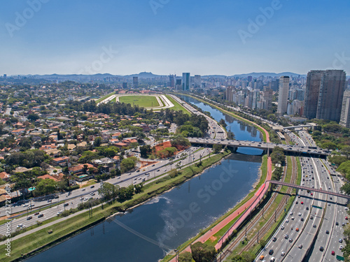 © MaxDrone, Obraz premium Drone View river sao paulo Brazil