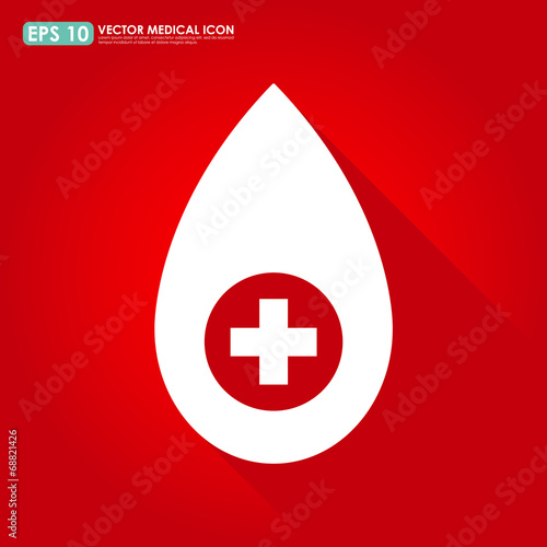 Fototapeta premium Drop icon with first aid sign on red background - medical & bloo