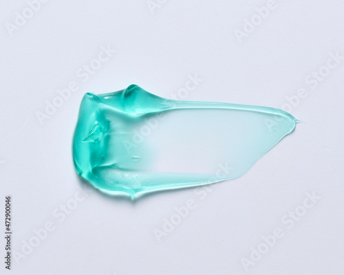 Obraz premium Drop of green gel cosmetics product brushed on white backdrop