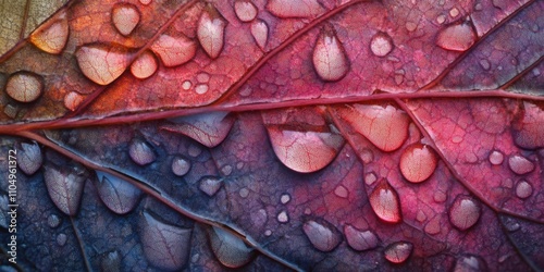 © Tevarplus, Fototapeta premium Droplets forming on the leaf Large leaf A detailed ma
