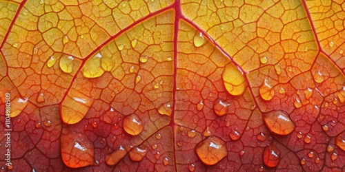 © Tevarplus, Fototapeta premium droplets of water Leaf edge A detailed macro sh