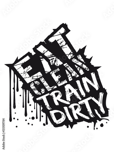 Fototapeta premium Drops cool scratch scratches stamp color text weight lifting clean eat muscles strong dumbbell weights train design clean train dirty logo
