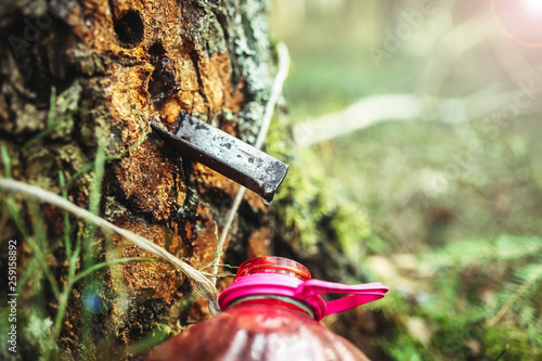 Naklejka premium drops of birch sap from a tree trunk.