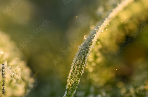 © ukasz, Naklejka premium drops of dew on the grass hoarfrost